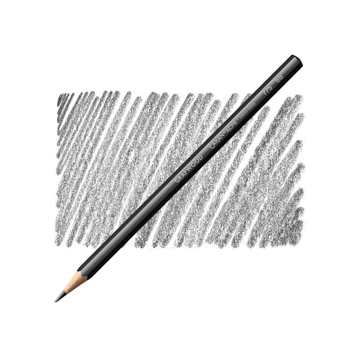 Extra fijn grafietpotlood van Caran d'Ache om zeer egaal zwart/grijs tonen te verwerken. Met Zwitsers oog voor detail heeft zelfs de gekleurde buitenkanten van het hout een indicatie voor de grijs/zwart factor van het potlood