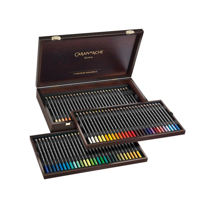 CARAN D'ACHE MUSEUM AQUAREL POTLODEN HOUTEN KIST 76-delig