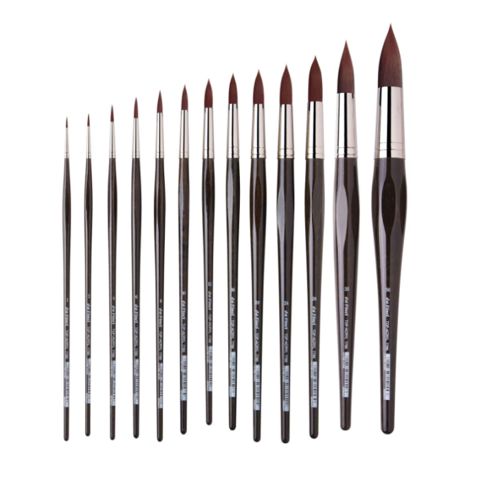 Dit penseel heeft een ronde vorm met rood-bruine synthetische vezels en middellange haren, waardoor je zowel fijne details als vloeiende lijnen moeiteloos kunt schilderen. De zeshoekige, ergonomische houten steel voorkomt dat het penseel wegrolt én zorgt voor een comfortabele grip, zelfs tijdens langere schildersessies.